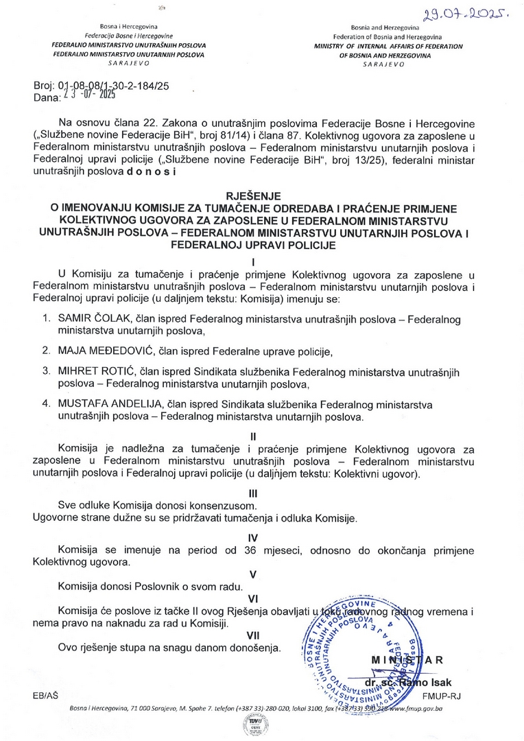 Formirana Komisija za tumačenje odredbi i praćenje primjene Kolektivnog ugovora